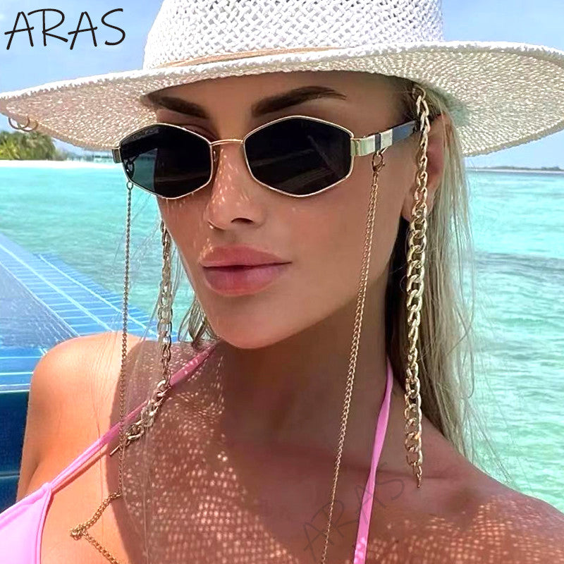 Retro hexagon glasses with chain